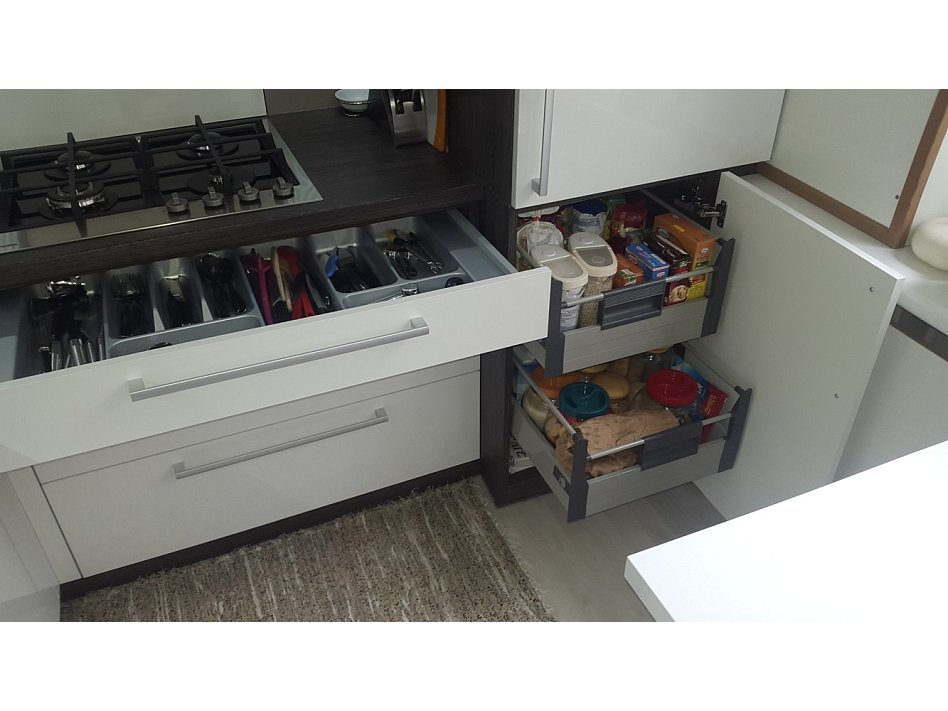 Práce probíhali kompletně od 3D návrhu, odvozem a likvidací původní kuchyně až po dopravu a montáž kuchyně nové v četně dodání a zapojení vestavných spotřebičů, baterie a dřezu.